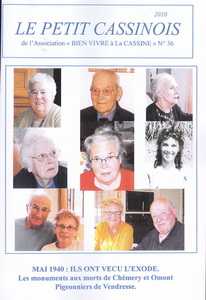 - A propos de la guerre 39-45 - L'exode de Ginette Ponsard (Charleville) - L'exode de mai 1940 de Jacqueline Blavier -Henry (Chémery sur Bar) - L'exode de Raymond Posta (Chémery sur Bar) - L'exode de Marie Thérèse Blavier- Mahut (Chémery sur Bar) - L'exode d'André Petit (Châtillon sur Bar) - L'exode d'Annie Hardy Lemaire et René Hardy (Ambly-sur-Bar et Vouziers) - L'exode de Pierre Sellier (Vendresse) - L'exode de Gabrielle Nicolini-Terlet (Chémery-sur-Bar) - De Quimper à Chémery-sur-Bar par Françoise Lepage-Bertrand - Le cahier de Marguerite Limbour dite Marianne Leroy (Chémery sur Bar) - Pigeonniers, fuies,colombiers à Vendrese (MF Barbe) - Travaux dans l'église de La Cassine (MF Barbe) - Les comédiens de l'ACCC à Evigny - Le coin des saveurs oubliées - Trucs et astuces